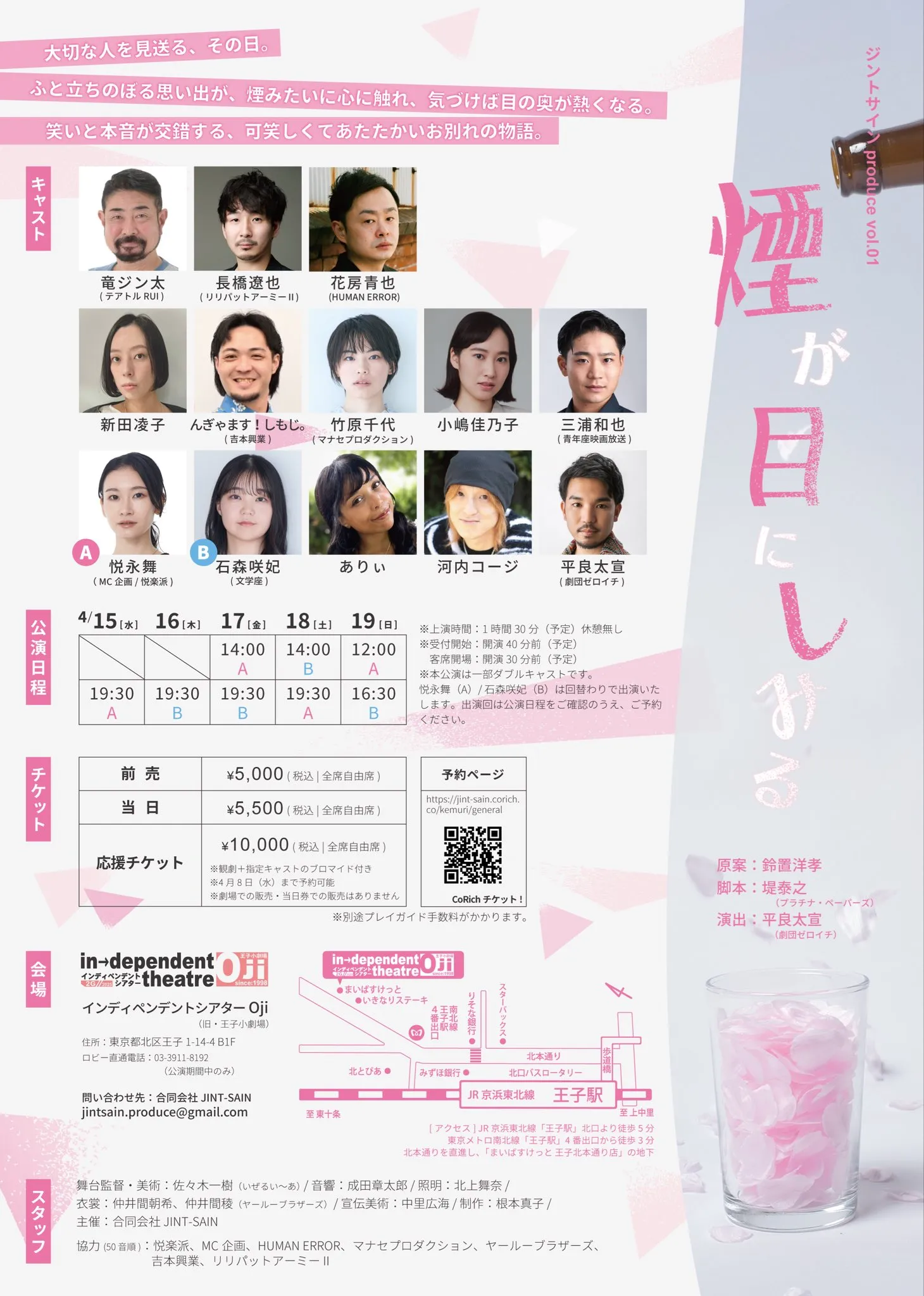 この度、ジントサイン プロデュース公演『煙が目にしみる』の公演を決定しました。